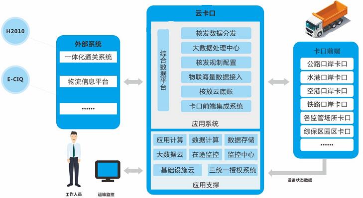 系統(tǒng)主要由前端嵌入式物聯(lián)設(shè)備、自適應(yīng)負(fù)載均衡總線、集中管控云平臺、綜合數(shù)據(jù)云底賬監(jiān)控平臺等組成,實(shí)現(xiàn)前端物聯(lián)設(shè)備分散式接入、集中管理,智能卡口云平臺集中部署,云底賬大數(shù)據(jù)智能分析,全面兼容各類卡口硬件和業(yè)務(wù)流程,實(shí)現(xiàn)物流底賬與車輛通行集中驗(yàn)放管理。通過云平臺集中部署,實(shí)現(xiàn)前端物聯(lián)設(shè)備自適應(yīng)接入與智能化運(yùn)行狀態(tài)分析,實(shí)現(xiàn)系統(tǒng)軟件插件式集中管理,以及不同卡口功能模塊的集中配置與推送。